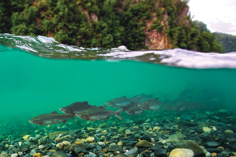 A pod of wild pink salmon swim up the pristine and free flowing Susitna River just below the site of a proposed mega dam being pushed by the State of Alaska in a scene from DAMNATION. Photo: Matt Stoecker