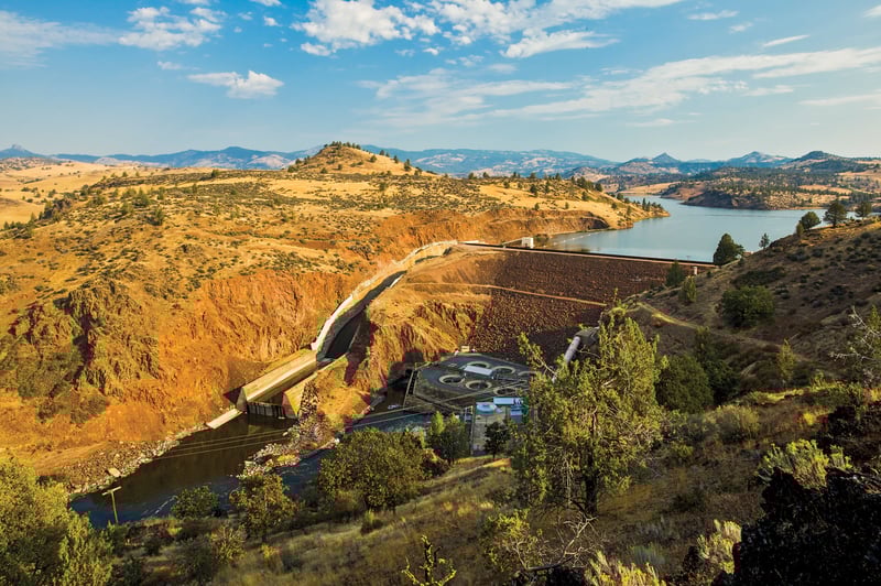 Iron Gate, the most downstream of four controversial dams strangling the Klamath River in a scene from DAMNATION. Photo: Matt Stoecker