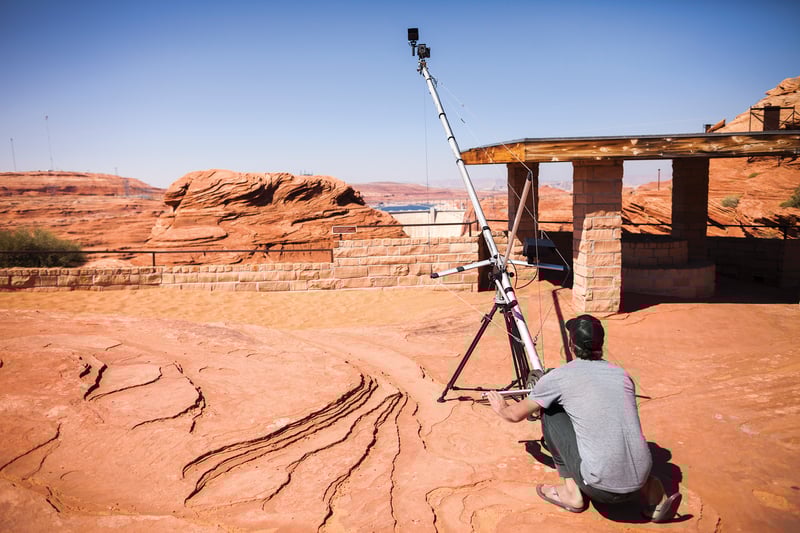 Trying to blend in with the tourists at a Glen Canyon overlook in Page, Arizona in a scene from DAMNATION. Photo: Travis Rummel