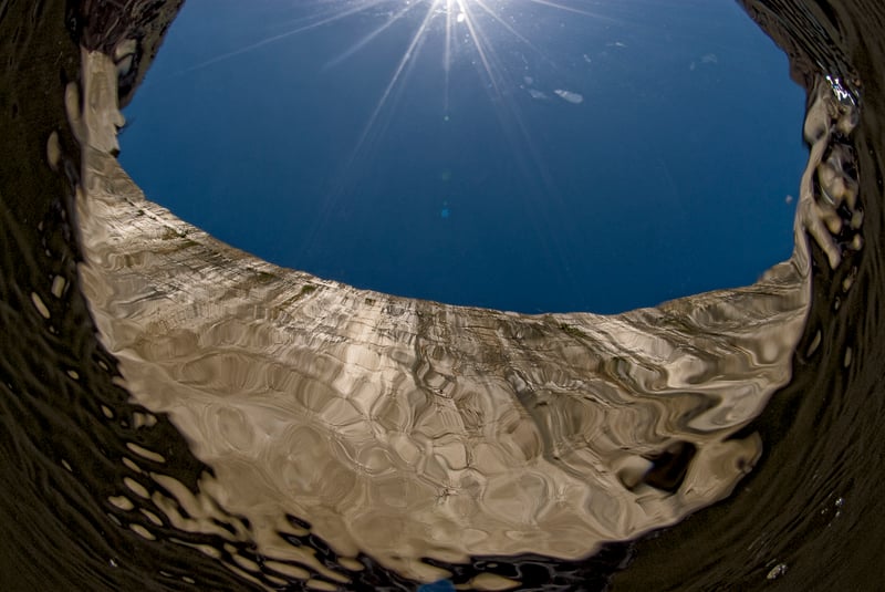 A daunting fish’s eye view of the Matilija Dam. Ventura River watershed in a scene from DAMNATION. Photo: Matt Stoecker